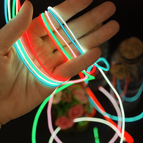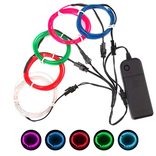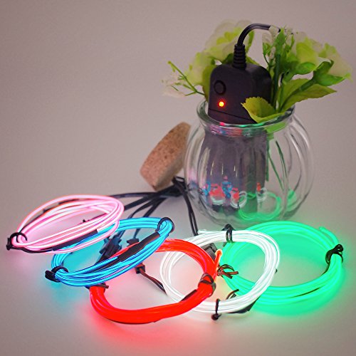 -. Feature : Five colors Electroluminescent Wire(red, green, blue, white, pink)= 5 x 1 metre of EL Wire + Driver + Splitter. / 3 modes of operation which are: permanently on ,fast blink and slow blink. Can easily switch mode by pressing the button. / Great for parties Halloween costume, Christmas decoration, car, cyclist's bike, camping bar. / Flexible and Energy saving: The EL Wire can be easily shaped in any way I want, also they can be unpled in case you only want to use one color. Less power drain than LEDs. / Powered by 2x AA batteires(not included). EL Wire Kit is Non-Toxic, cold to the touch, super bright, durable, and resistant to water and ice.