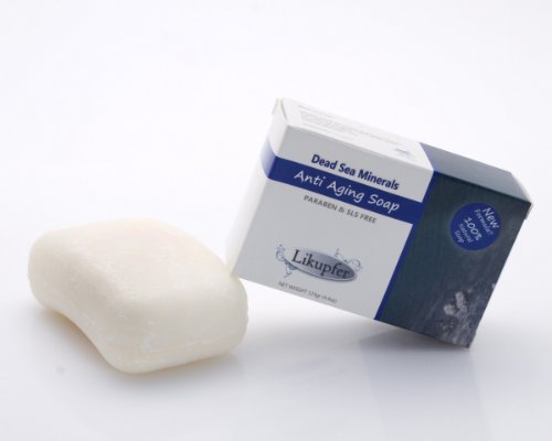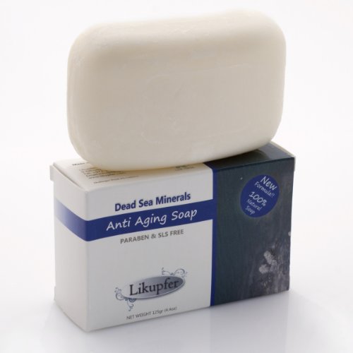Studio : LiKupfer Publisher : LiKupfer Binding : Health and Beauty Product Description Anti Aging Soap Dead Sea Minerals (Paraben and SLS Free) by LiKupfer. Dead Sea Anti-Aging Face and Body Skin Soap- 125gr (4.4oz) Likupfer's 100% all- natural Dead Sea Salt Soap is uniquely formulated for anti- aging treatment. This product is fully- concentrated with Dead Sea salts, minerals, and natural oils. The anti- aging soap is enriched with the minerals and traces of natural elements from the Dead Sea. Because this natural soap is essential for healthy glowing skin, it removes dirt and impurities, while also restoring the natural balance of the skin. 0