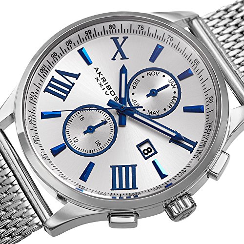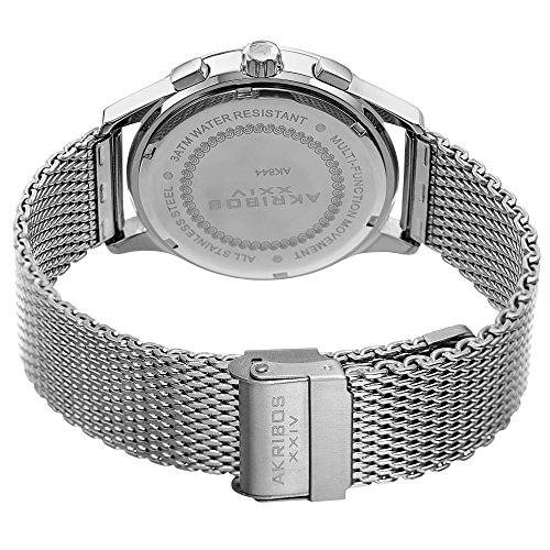 Akribos XXIV Men's Swiss Quartz Stainless Steel Dress Watch, Color:Silver-Toned (Model: AK905SS)