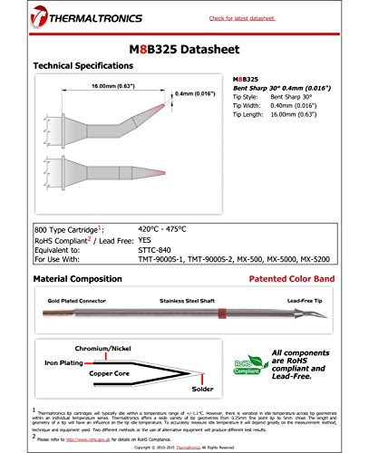 Thermaltronics M8B325 Bent Sharp 30deg 0.4mm (0.016") interchangeable for Metcal STTC-840