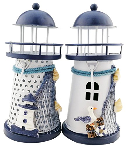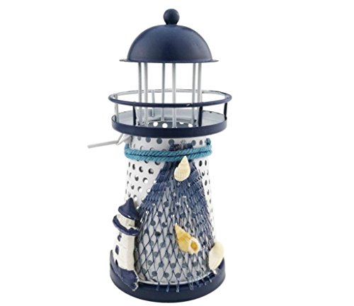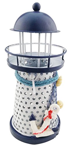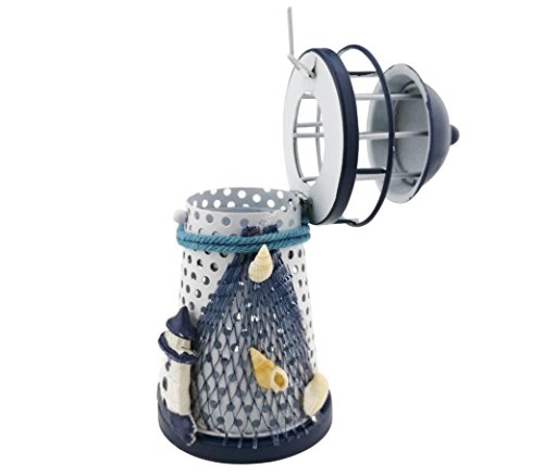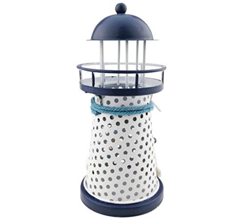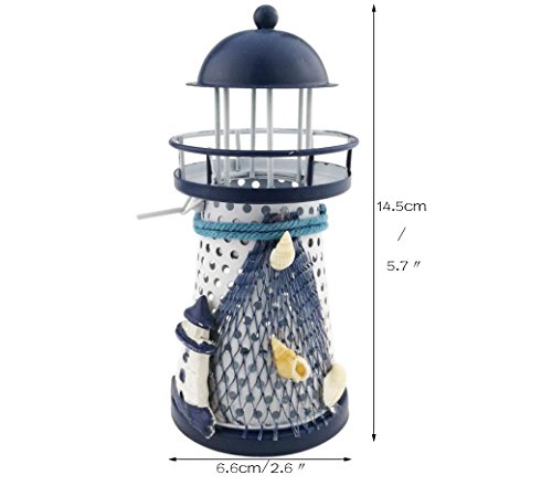 Mediterranean style Metal Iron Blue and White Lighthouse Pharos Beacon Candle Holder Tealight Holder Home Cafe shop Decoration Housewarming gift