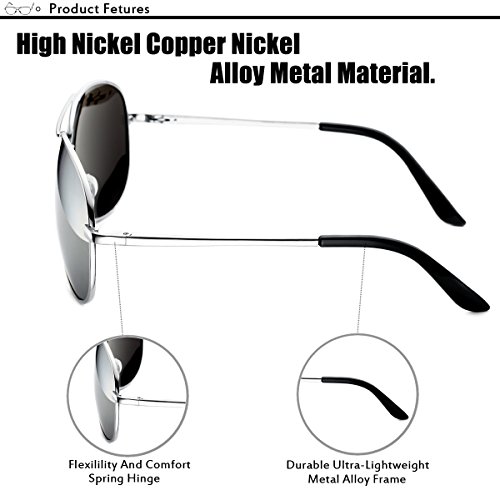 The Sunglasses are Made of High Nickel Copper Nickel Alloy Metal Material,with Durable Ultra-Lightweight Metal Alloy Frame.Lenses block 99% or 100% of UVB and UVA rays.UV 400 indicates an eye protection item that has been optimized to prevent eye exposure to both UVA and UVB radiation. One of the biggest differences between UV 400 protected items as compared to other items that protect against the sun's radiation is the fact that UV 400 protected items are capable of blocking light rays as small as 400 nanometers.