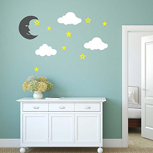 -. Title : Amaonm Giant Large Cartoon Vinyl Black Moon White Clouds Yellow Stars DIY Wall Decals Stickers Murals Nursery art Decor for Kids Room Babys Girls Boys Bedroom Living Room Bathroom Playroom 39"H x 79"W