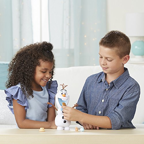 After a long day of snowy adventures, Olaf needs a snack! Inspired by the Disney animated short film event, Olaf's Frozen Adventure, Olaf tries to enjoy holiday treats like his friends, but they slide right out! Feed him yummy pretend snacks to hear him say funny phrases and make silly sounds. Little dreamers will have so much fun pretending to feed Olaf 5 different snack accessories. Talk about a sugar rush!