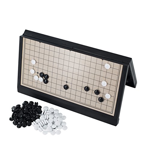 HIGH QUALITY - Made with a smooth surface, high quality and eye protected plastic. The Go board unfolds to be completely flat, containing 2 hop-pockets for the stones which perfectly fit inside the board. Stones are made with a high quality melamine material.