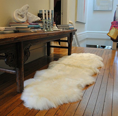 Soft luxurious white sheepskin rug. The long white fluffy fur is so soft to the touch that you could actually use it for a cover up or soft blanket on the foot of your bed. Keep yourself warm or use it on the floor for a fabulous addition to your home. Note: Because of the tanning process slight flaws in the material are natural and nothing to be alarmed about. No rug is perfect or exactly the same size.Feature