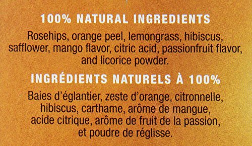 -. Feature : Pack of six, 30 count (Total of 180 count) / Fruity ingredients combined with the naturally sweet flavor of mango and the tropical flavor of passion fruit make this a delicious, aromatic tea / This bright red-orange tea is delicious hot or iced / Kof-K Kosher certified, caffeine free, ships in Frustration Free Packaging / Blended in the USA, with natural ingredients from around the world