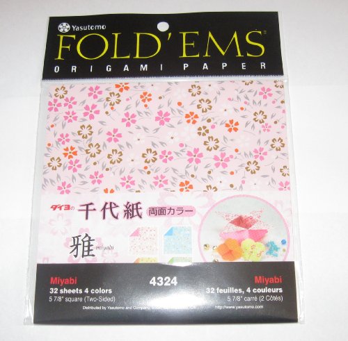 -. Binding : Misc. -. Brand : Yasutomo -. Color : Assorted -. EAN : 0756190111643 -. Feature : Beautiful double-sided paper / Each sheet measures 5-7/8 inch square / Features a pattern on one side and a coordinating solid color on the other / Contains thirty-two sheets of paper / Includes instructions for folding various origami shapes -. Label : Yasutomo -. Manufacturer : Yasutomo -. Model : 4324 -. MPN : 4324 -. NumberOfItems : 1 -. PackageQuantity : 1 -. PartNumber : 4324 -. ProductGroup : Art and Craft Supply -. ProductTypeName : HOME -. Publisher : Yasutomo -. Studio : Yasutomo -. Title : Fold 'ems Origami Paper 5.875" 32/Pkg-Miyabi -. UPC : 031248998286
