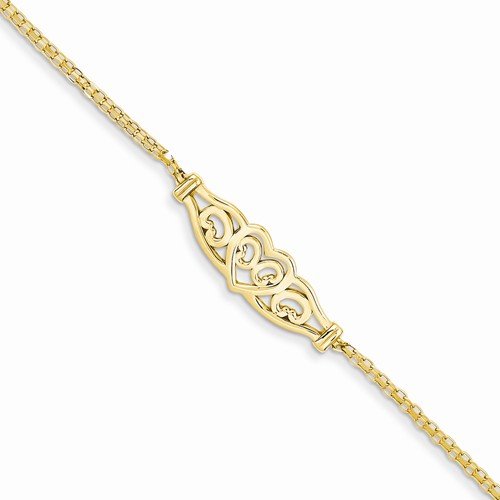 -. Title : 14k Yellow Gold 9in Heart Anklet