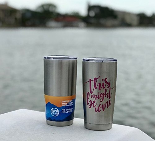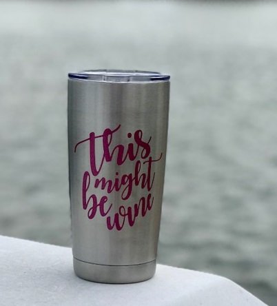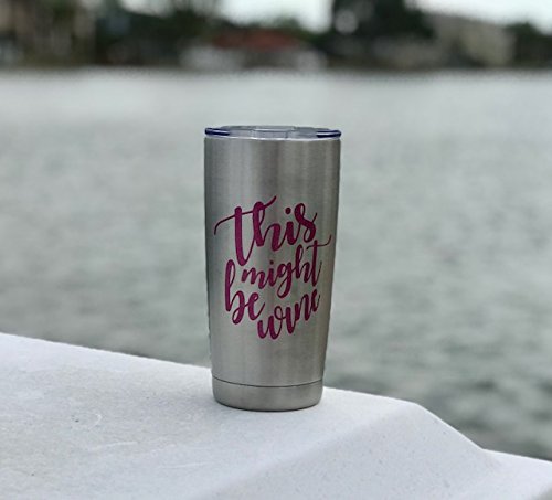 THIS MIGHT BE WINE Pink Glitter Sparkle 20oz SS Double Wall Tumblers with lid and snap on lid (with slide closure) . This is a fun tumbler that will be enjoyed for years and years to come. Top shelf dishwasher safe. Great Gift that will bring smiles and compliments to all! As always 100% Satisfaction Guaranteed from products by The Navy Knot.Feature