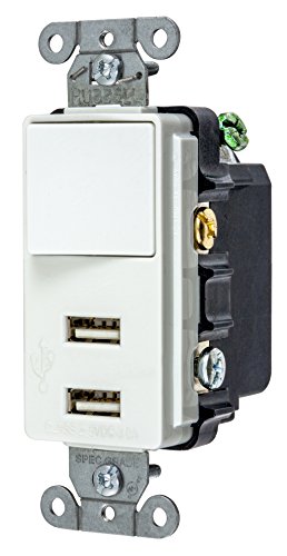 Bryant Electric USBB102W 15 Amp 125V Decorator USB Switch Combination Charger, White