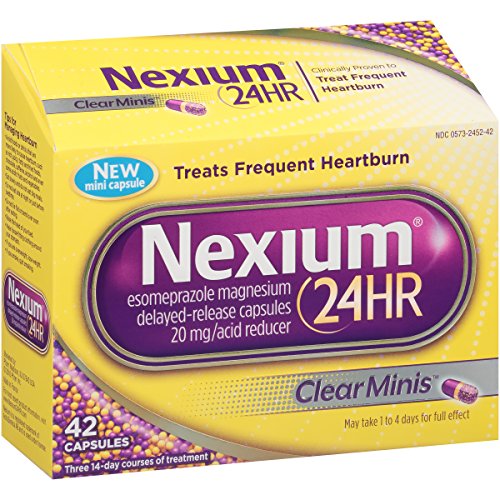 Get 24-hour relief from frequent heartburn with Nexium 24HR ClearMinis. It provides the same complete protection (3) from frequent heartburn in a potent little pill. Nexium 24HR ClearMinis work by blocking acid directly at the source, giving you 24 hours of protection (4) from frequent heartburn. Just one pill a day provides all-day, all-night protection (4) from frequent heartburn. Nexium 24HR is the #1 Selling OTC frequent heartburn brand (2).