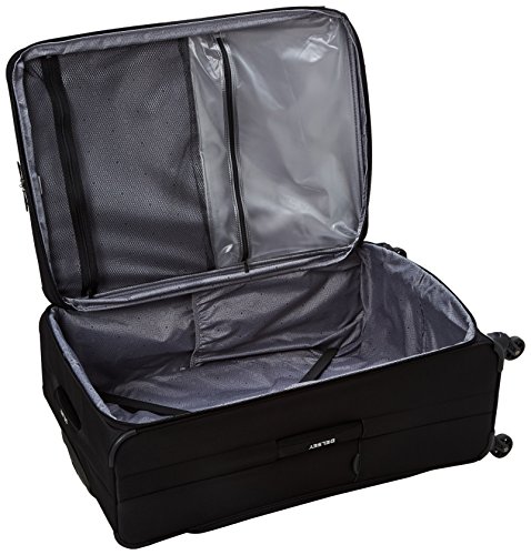 Studio : Delsey Luggage, Inc. Publisher : Delsey Luggage, Inc. Binding : Apparel Product Description This 29" expandable spinner upright by DELSEY is part of the sky max collection, which has tons of organization, a light yet tough construction at a great value. 8 total pockets for exceptional storage: three front pockets for maximum organization, back pocket for magazines, mesh pocket and wet pocket in lid, shoe pockets in main compartment. Guardian self repairing interlocking zippers. Cushioned neoprene top and side carry handles. Easy to grab bottom handle. Integrated id tag. Interior tie-down straps. Expansion for maximum packing flexibility. Dual position trolley system for 2 or 4 wheel use. 0