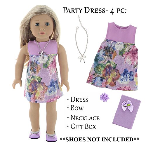- PARTY DRESS: Cute lavender dress featuring a floral sequined design, Bow, Gift Box.