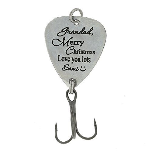 -. Binding : Misc. -. Color : Grey -. EAN : 0764102679532 -. Feature : Light Weight Stainless Steel measures Top to the Bottom 2 1/2" / JUST LIKE PICTURED AND CUSTOMIZE IT WITH NAME ON TOP AND BOTTOM / In order to Fish with it, You do need to attach weight to this lure / Front side Engraving Only / Pictured item Design Created (TM) LGU, Letter will Print Dark -. IsAutographed : 0 -. IsMemorabilia : 0 -. Label : lgu -. Manufacturer : lgu -. ProductGroup : Sports -. ProductTypeName : SPORTING_GOODS -. Publisher : lgu -. Studio : lgu -. Title : LGU(TM) Custom Personalized Hook Fishing Lure Gift - Merry Christmas Love you Lots -. UPC : 764102679532