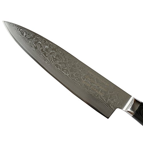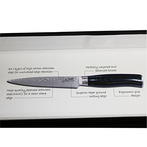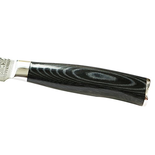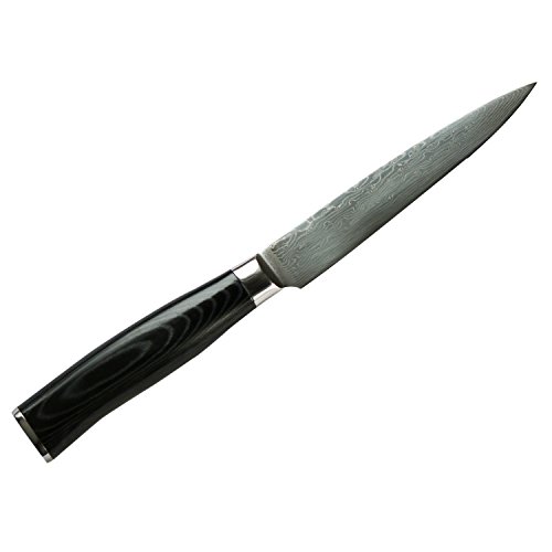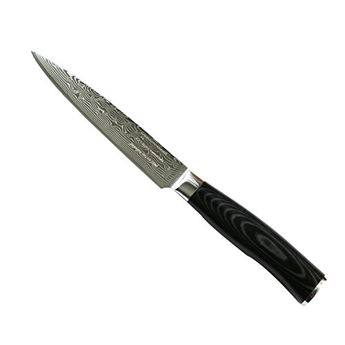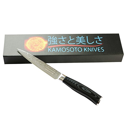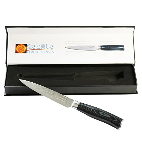 5-inch Professional Damascus Utility Knife by Kamosoto with High Carbon Japanese 67 Layers VG-10 Damascus Stainless Steel, Ergonomic Micarta Handle and Beautiful Tiny Wave Blade Pattern, KAM504