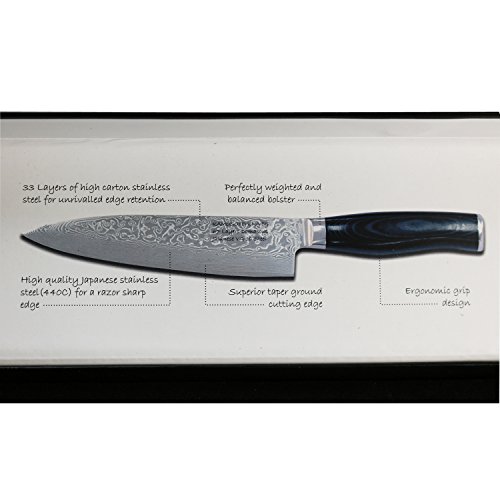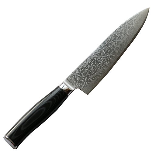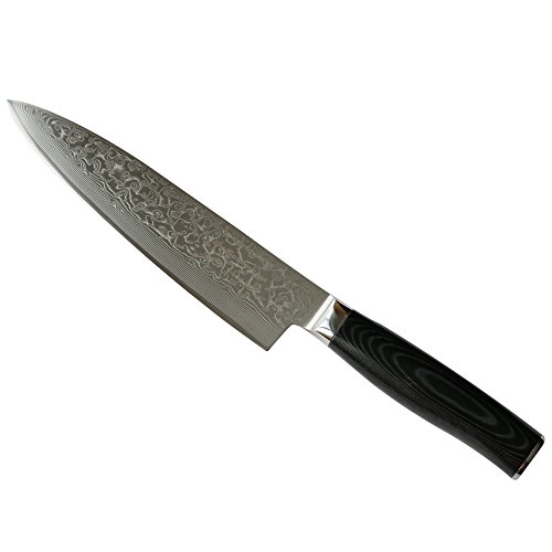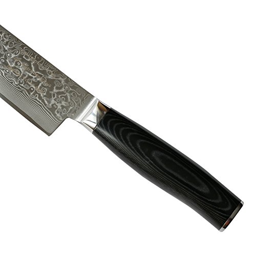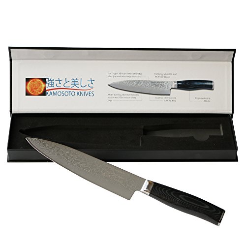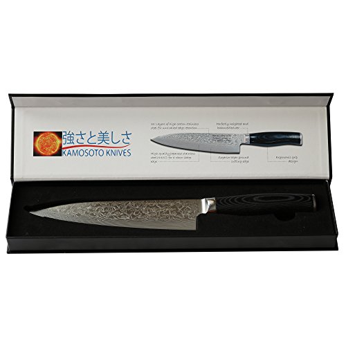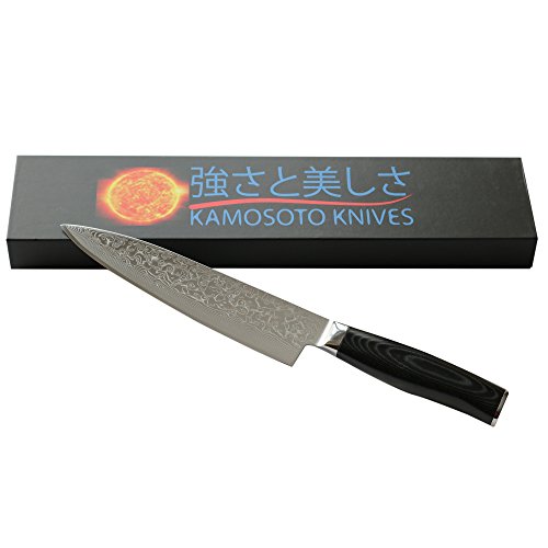 8-inch Professional Damascus Chef Knife by Kamosoto with High Carbon Japanese 67 Layers VG-10 Damascus Stainless Steel, Rounded Micarta Handle and Beautiful Tiny Wave Blade Pattern, Gyuto Knife KAM542