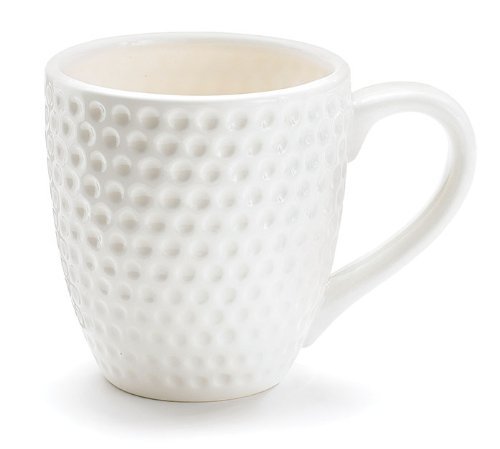 -. Feature : Hand-painted ceramic white mug with dimples to resemble a golf ball. / Mug measures:4 1/4"H X 3 1/4"Opening and holds 15 ounces / Gift boxed / Handwash only/FDA approved