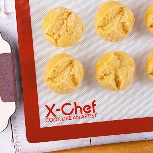 NON-STICK AS OVEN LINER: Made of fine silicone, this X-Chef Silicone Baking Mat is Non-stick, avoids adding calories from oils, sprays or butter, meet your demand for a health diet. Pick up dough, cookies or cakes with ease without stucking on messes.