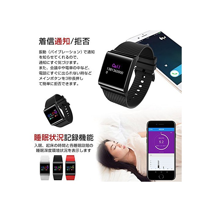 원본상품명: FATMOON リストバンド スマトブレスレット カラフルディスプレ フィットネス 活動量計 心拍計 血測定 計 防水 スマトウォッチ 電話着信通知 時計 カロリ消費 睡眠測 アラム