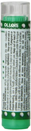 ReleaseDate : 2013-06-22 Studio : OLLOIS Homeopathic Medicines Publisher : OLLOIS Homeopathic Medicines Binding : Health and Beauty Product Description Ollois Hamamelis virginiana 30C homeopathic single medicines. Traditionally used to temporarily improve symptoms of varicose veins and hemorrhoids. The dosage is not related to the weight and age of the patient. In general, dissolve 5 pellets 3 times a day until symptoms are relieved or as directed by your health care professional. Contains appx. 80 pellets in each tube, each dose should be placed under the tongue of adults and children, or in the cheek of an infant, where they will dissolve. It is preferable to take apart from meals. No side effects, no drug interaction. For informational purposes only, not intended for, and neither should it be taken as a substitute for professional medical advice. Stop use and ask a physician if symptoms persist for more than 3 days or worsen. If pregnant or breast-feeding, ask a health professional before use. Keep out of reach of children. These 'Uses' have not been evaluated by the Food and Drug Administration, 0