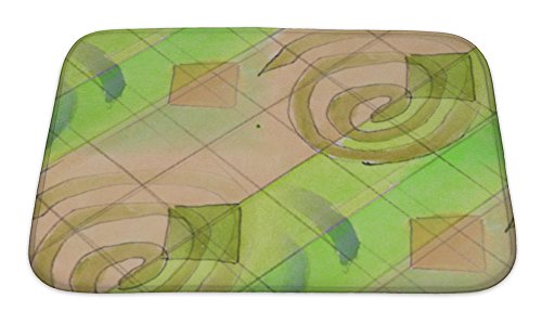 Gear New No Slip Microfiber Memory Foam Blots Green Figures Watercolor Painting Bath Rug Mat, 24" X 17"