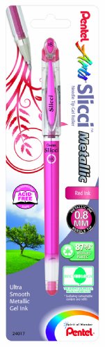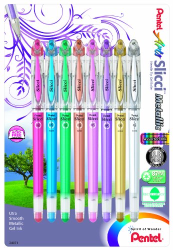 Pentel Arts Slicci METALLIC (0.8mm) Needle Tip Med Gel Pen Assorted Metallic Ink 8-Pk Pentel Co., Ltd. is a privately held Japanese company which produces stationery products. The name is a combination of the English words pen and tell. Pentel is also the inventor of non-permanent marker technology.