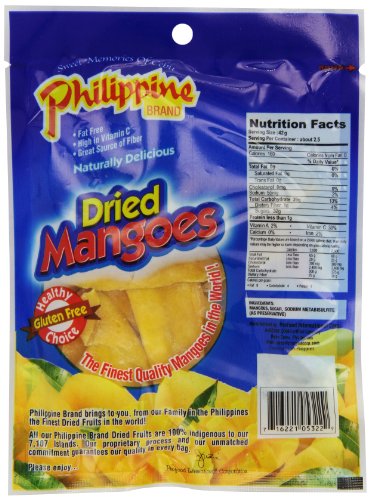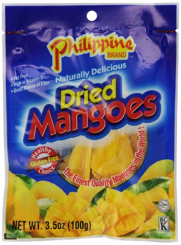 -. Binding : Grocery -. Brand : Philippine -. EAN : 0716221053229 -. Feature : Experience just one bite, you'll understand why Philippine Mango is famous for it's quality flavor and natural goodness! Our dried mangoes are lush, sweet and tasty. Nothing but the true taste of mango that goes into every bite! / Naturally tree ripened mangoes / Delicious, high in Vitamin C and great source of Fiber / Unique design transparent pack. / Made in the Philippines by the largest Philippine dried fruit producer and the standard bearer of world class processed fruit products. -. Label : Pro Food USA -. Manufacturer : Pro Food USA -. NumberOfItems : 25 -. PackageQuantity : 25 -. ProductGroup : Grocery -. ProductTypeName : GROCERY -. PublicationDate : 2011-11-16 -. Publisher : Pro Food USA -. Size : 3.5 Ounces -. Studio : Pro Food USA -. Title : Philippine BRAND Dried Mangoes, 3.5-Ounce (Pack of 25) -. UPC : 716221053229