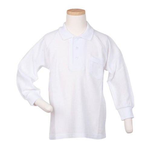 -. Title : 貴重な日本製【クールプラス繊維】お子様用長袖かのこポロシャツ【白】【100~160サイズ】お着替えしやすいストレッチ素材衿