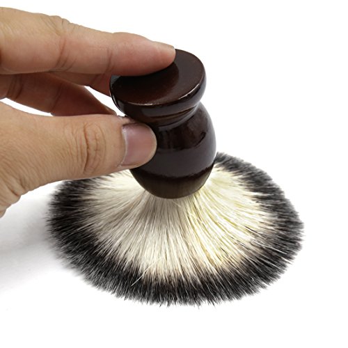 uxcell® Dark Brown Wooden Handle Beard Cream Nylon Hair Wet Shaving Brush Barber Tool for Male