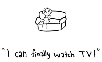 Simply works (follow quick start guide): 1) plug TV BlueCaster to your TV with included optical audio cable or 3.5mm cable; 2) power up your TV, BlueCaster and headphones; 3) put on your TV headphones. Enjoy.