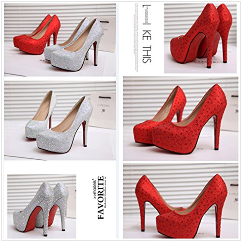 Binding : Apparel Product Description Available Color: Sliver/Red ***Size Table*** US(listing) 5.5/EURO 36/Tag size 35/UK 3.5----Heel-toe(the length of the foot):225mm, Measurement inside:230mm US(listing) 6/EURO 36.5/Tag size 36/UK 4----Heel-toe(the length of the foot):230mm, Measurement inside:235mm US(listing) 6.5/EURO 37/Tag size 37/UK 4.5----Heel-toe(the length of the foot):235mm, Measurement inside:240mm US(listing) 7.5/EURO 38/Tag size 38/UK 5----Heel-toe(the length of the foot):240mm, Measurement inside:245mm US(listing) 8/EURO 38.5/Tag size 39/UK 5.5----Heel-toe(the length of the foot):245mm, Measurement inside:250mm Package includes: 1 x Women shoes (with retail box) NOTE: 1. Since the size of shoes from different company may be different,our shoes may run larger or smaller than the size you're used to, pls check size cart in the prouduct page carefully before ordering. 2. Suggestation: had better check the actual measurements(Foot Length )in the size chart on the shoe¡?s product page and compare them to your foot measurements before ordering. 3. As different computers display colors differently, the color of the actual item may vary slightly from the images, thanks for your understanding. 4. Size: pls allow 0-4 mm difference due to manual measurement.