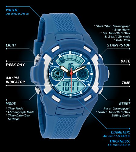 -. Feature : Ideal watch for intense training sessions or the everyday routine / Sturdy resin strap with a buckle closure / Multiple functions: Stopwatch, chronograph, alarm, date, 12/24-hour formats, night-light / 3 ATM (30 m) water resistant case / Casual yet sophisticated design that effortlessly makes a statement