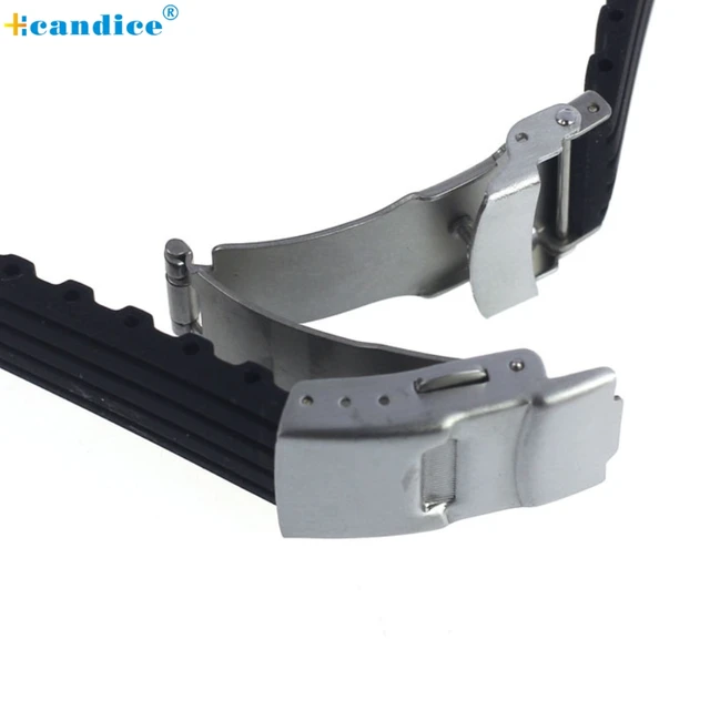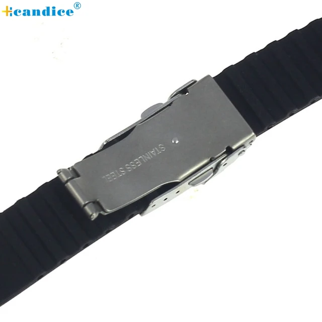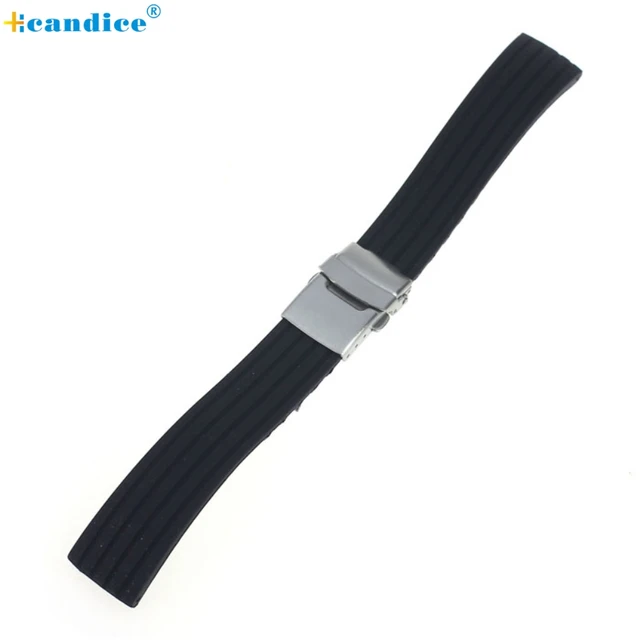 18 미리메터 ~ 24 미리메터 블랙 실리콘 고무 시계 스트랩 밴드 배포 버클 방수 창조적 Mar10