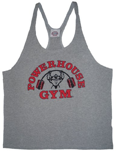Binding : Apparel Product Description Y-back string tank tops from Powerhouse Gym were exclusively made for Best Form Fitness Gear and are only available here! The shoulder straps on this stringer tank top are narrow, but sewn so they will not roll-up. The classic "bent-bar" logo is screen printed across the front.. The y-back design with low-cut sdes allows for a fuller range of motion during the most intense workout and also makes these Powerhouse Gym tank tops comfortable to wear in hot weightlifting room environments. These.muscle tank tops are made from 100% cotton. Powerhouse Gym tank tops like all other workout clothes available through Best Form may be exchanged/returned within 30 days. Returns are subject to a 20% re-stocking fee. 0