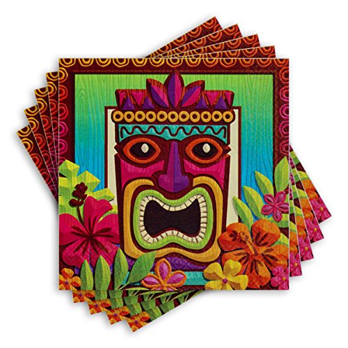 Sun-Sational Summer Luau Party Tropical Tiki Beverage Napkins Tableware, Paper, 5" x 5", Pack of 125