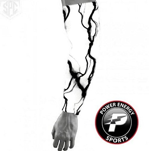 -. Binding : Misc. -. Brand : Power Energy Sports -. Feature : Compression fit and stretch fabric for muscle support and freedom of movement. / Moisture wicking performance fabric keeps you dry and comfortable. / 83% sublimated Polyester/17% Spandex. / Provides protection from UV rays. / Click thumbnail image for sizing information -. Label : Power Energy Sports -. Manufacturer : Power Energy Sports -. ProductGroup : Sports -. ProductTypeName : SPORTING_GOODS -. Publisher : Power Energy Sports -. Studio : Power Energy Sports -. Title : Baseball Sports Compression Arm Sleeve - Black Lightning / White Sleeve