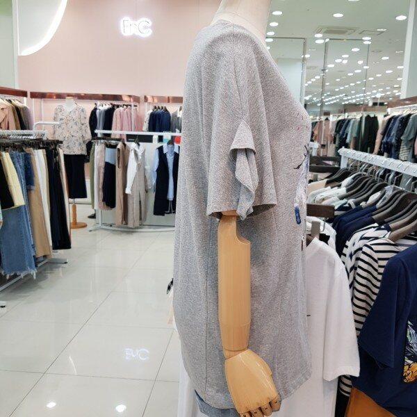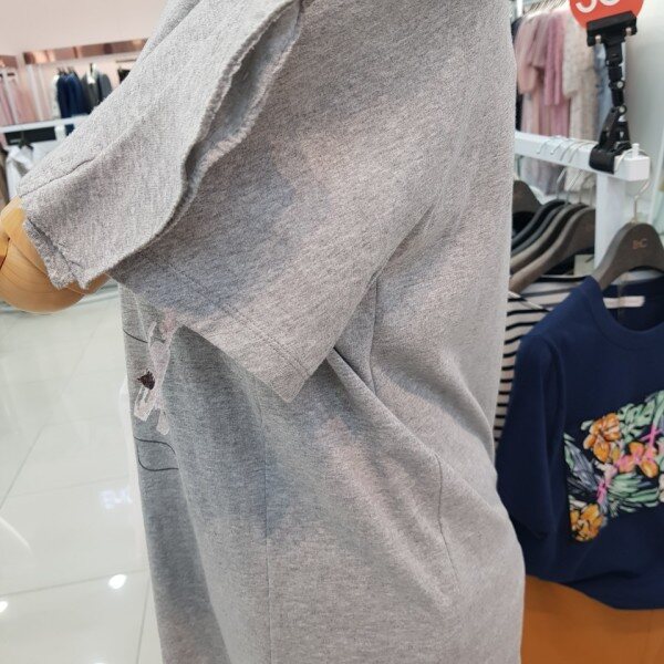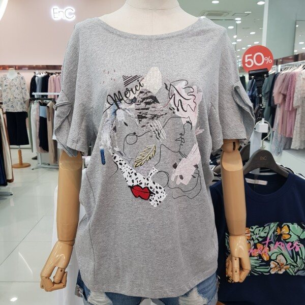 기본 면티에 세련된 프린팅과 소매의 프린트가 밋밋함을 덜어 편안하면서도 멋스럽게 입을수 있는 아이템