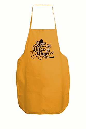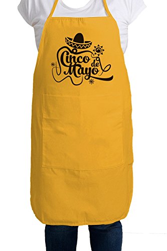 Clear and readable Cinco de Mayo print in Black letters on this orange apron for Cinco de Mayo - a great reminder of this festive celebration of mexican culture and heritage.