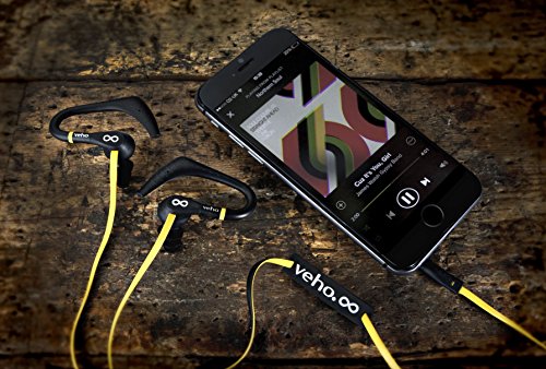 -. Title : Veho 360 Water Resistant Sports Earphones with Ear Hooks and Flex Anti-Tangle Cable - Yellow/Black