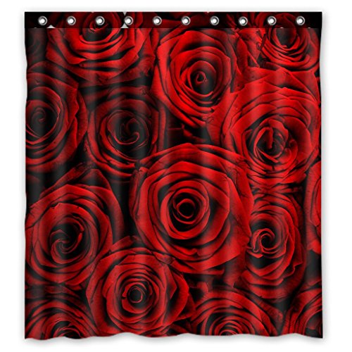 Custom Waterproof Fabric Bathroom Shower Curtain with Hooks Red Rose Flower Floral Print Design 66 x 72 Inches