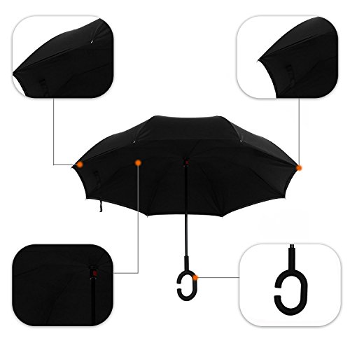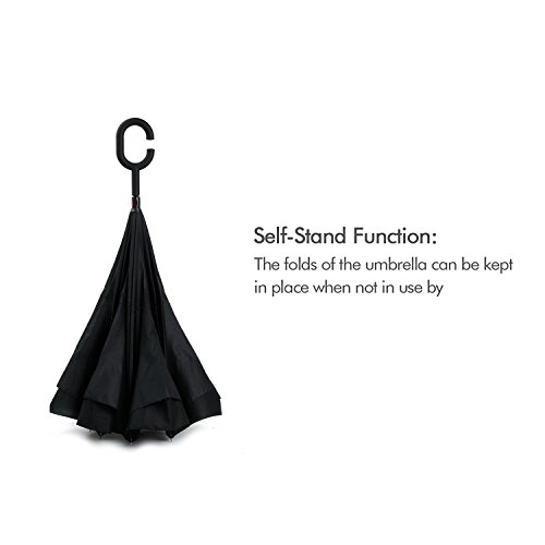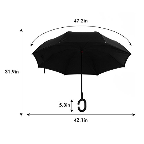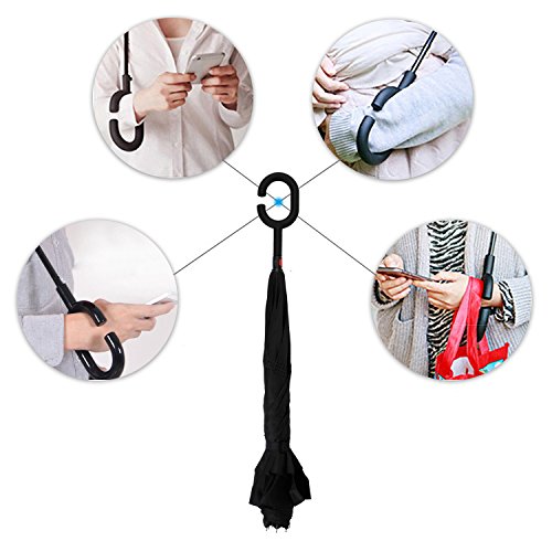 -. Title : iTrunk Double Layer Reverse Folding Umbrella With C-Shaped Hands free Handle - UV Protection Windproof Waterproof for Outdoor and Car Use