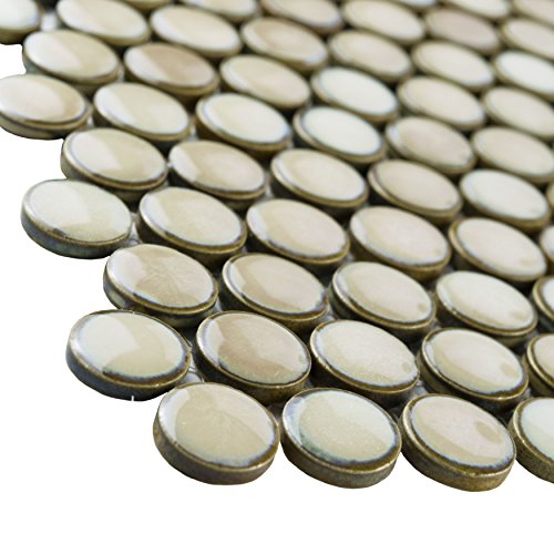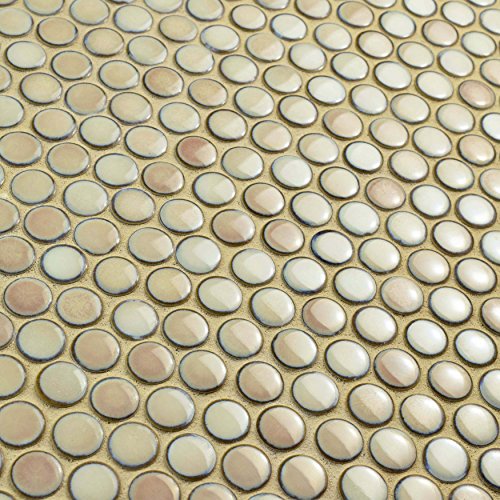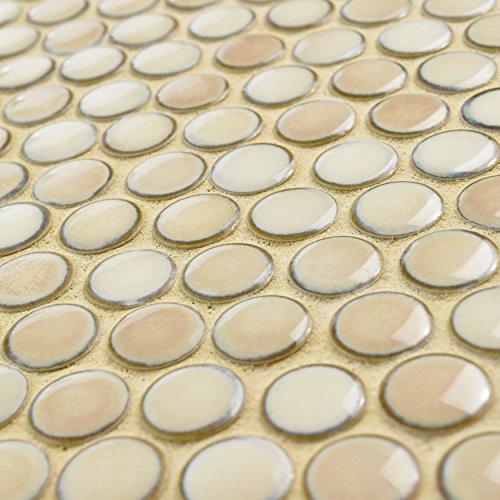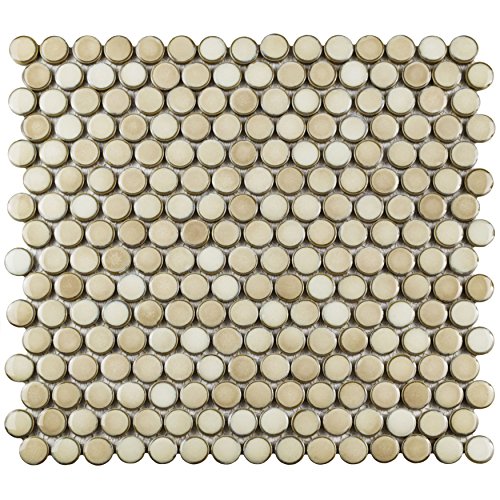 SomerTile FKOMPR71 Penny Truffle Porcelain Mosaic Floor and Wall Tile, 12" x 12.625", Beige/Brown/cream