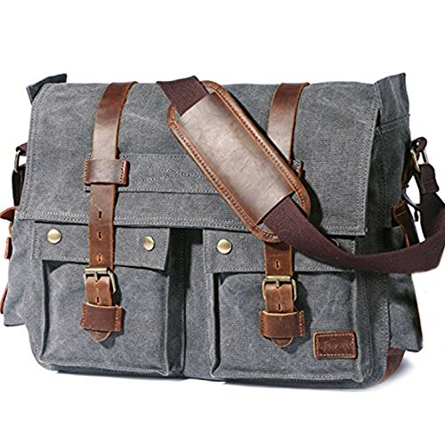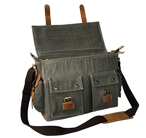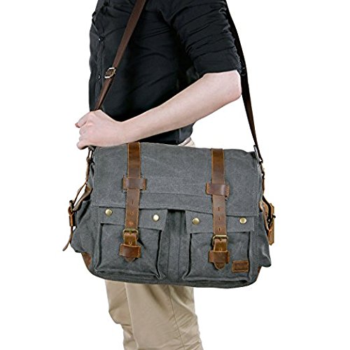 -. Title : KK's leather 16" Inch Men's Messenger Bag Vintage Canvas Leather Military Shoulder Laptop Bags
