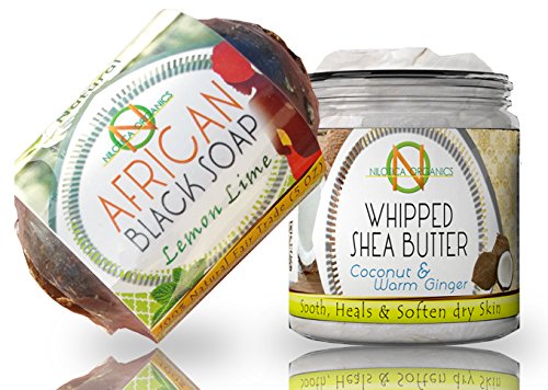 #1 Whipped Body Butter - Organic Shea Butter Cream 8oz & African Black Soap 5oz – (BEAUTY GIFT SET – Acne Care Kit) Bundle - Moisturizing, Healing, Eczema, Luxurious Feel, Improving Blemishes