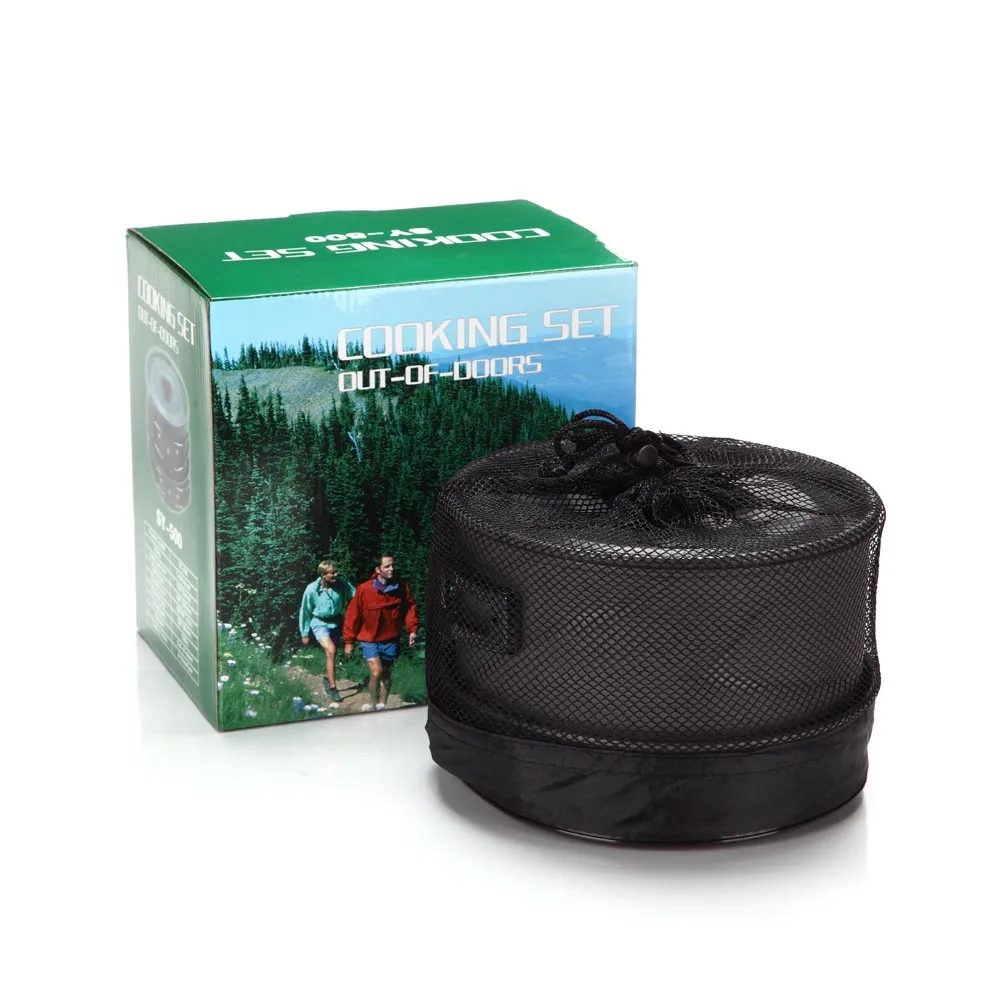 All the objects in this cooking set can be stored together in a bag for convenient carry.