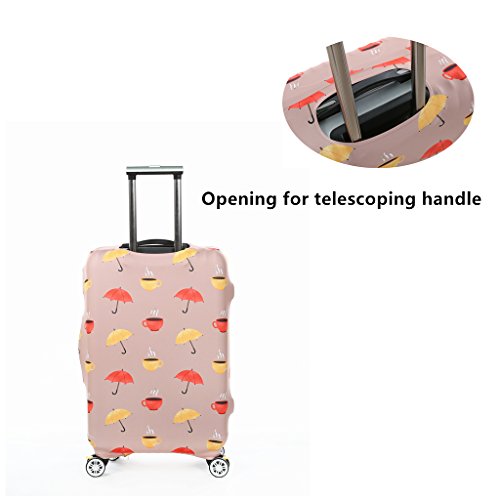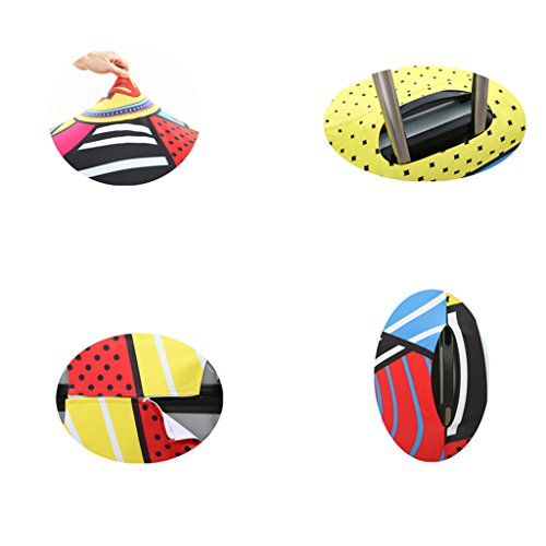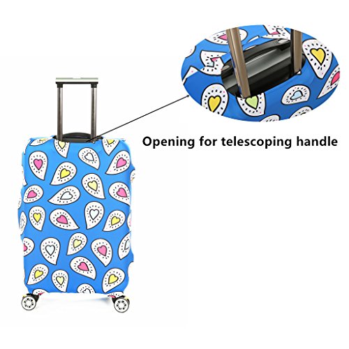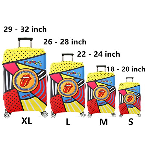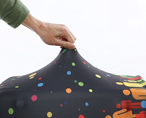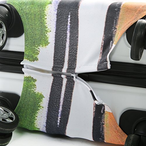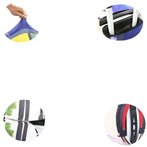 Frequently Asked Question(FAQ): 1.what type of material is the luggage cover made of? Answer:It is made of polyester,Spandex;The Fabric is very soft and flexible ,thick. It is not easy to fold and color fading. Stretch material 2.How does this go through security? Answer:There is no problem with security with this cover check in, you don't need take it off to go through security 3.how to choose the cover for your suitcase? Answer:There is Size S, Size M, Size L,which will fits the luggage 18 - 28 inch; Size S (Suitable for 18---20 inch luggage) , Size M (Suitable for 22---24 inch luggage), Size L (Suitable for 26---28 inch luggage),If your luggage is hard shell style, please order a bigger size 4.Is it closed by Velcro or Zipper? Answer:It's Zipper closed one Note: The measurement may have 1-3cm (0.39-1.18 inch) inaccurate errors; There might be slight colour deviation due to different displays; Have you experienced your luggage being scratches and stains after going through a horror path of airline handling process? This stretched suitcase cover will help you solve this problem,you can have a try It's also a good choice to decorate your luggage,attractive and cute Cover ONLY, suitcase not included Feature: Protects your suitcase against dirt and light damages; Ensures your suitcase stays shut during the trip; if you have any question for choose the right size for your luggage, please tell us your luggage dimensions(L * W * H),then we will help you.you also can check the size guidance as picture shows Packing including: 1 * printed suitcase cover