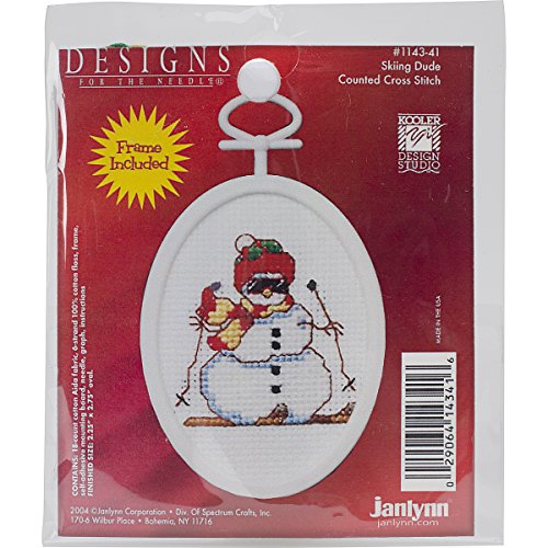 Janlynn 1143-41 18 Count Mini Counted Cross Stitch Kit, 2.75-Inch, Oval, Skiing Dude