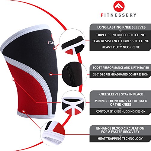 -. Binding : Misc. -. Brand : Fitnessery -. Feature : ★ LIFT HEAVIER: Our powerlifting knee sleeves will enable you to add a few more reps and even increase your load that little bit day in, day out. These crossfit knee sleeves give you that extra cushion that can extend your workout. Add to cart NOW to enjoy these compression knee sleeves in 48 hours with Amazon P.R.Ime. **Do NOT assume your size. Refer to the 2nd Amazon image to find your correct size.** / ★ POWER SUPPORT: Whether you are engaged in weightlifting, crossfit or any other exercises, this pair of knee sleeves gives you the knee support you need every time. / ★ TRIPLE-REINFORCED STITCHINGS: Our compression sleeves are manufactured using the highest quality neoprene and unique reinforcement technology to prevent rips. / ★ FREE BONUS: You will receive a free mesh carrying bag along with detailed user guide. / ★ LIFETIME GUARANTEE: We fully stand behind our product. If you are not happy with their condition or performance, just email us and we will quickly issue a full refund or send you a replacement. -. IsAdultProduct : 0 -. IsAutographed : 0 -. IsMemorabilia : 0 -. Label : Fitnessery -. Manufacturer : Fitnessery -. ProductGroup : Sports -. ProductTypeName : SPORTING_GOODS -. Publisher : Fitnessery -. Studio : Fitnessery -. Title : Fitnessery Compression Knee Sleeve Pair: Knee Sleeves for Knee Support - Knee Compression Sleeve Pair - Knee Sleeves Powerlifting - Knee Sleeves CrossFit - 7mm Knee Sleeves