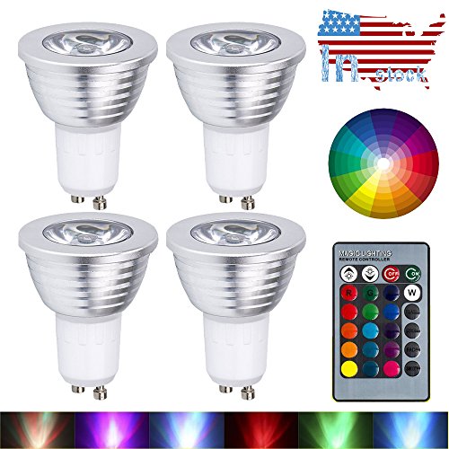 GU10 LED Lights Bulbs, URPIRE 4W Spotlight Bulb 16 Colors Changing Lights with 24 Keys Remote Control for Home Decoration, Bar, Landscape, Bedroom, Living Room, Track Lighting ( 4 Pack )